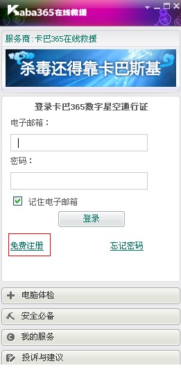 您也可以通过卡巴365在线救援客户端点击“免费注册”根据页面提示进行注册